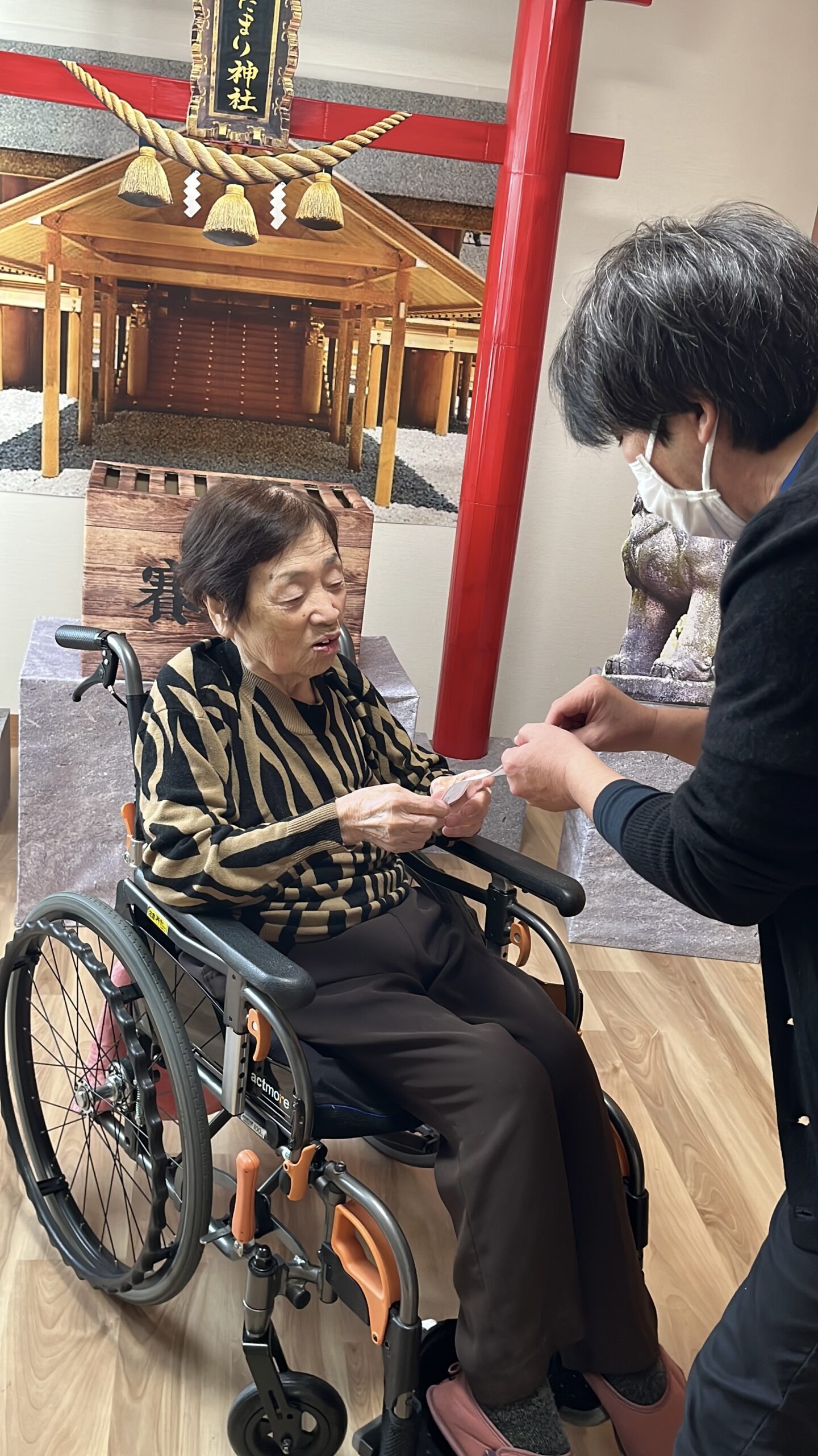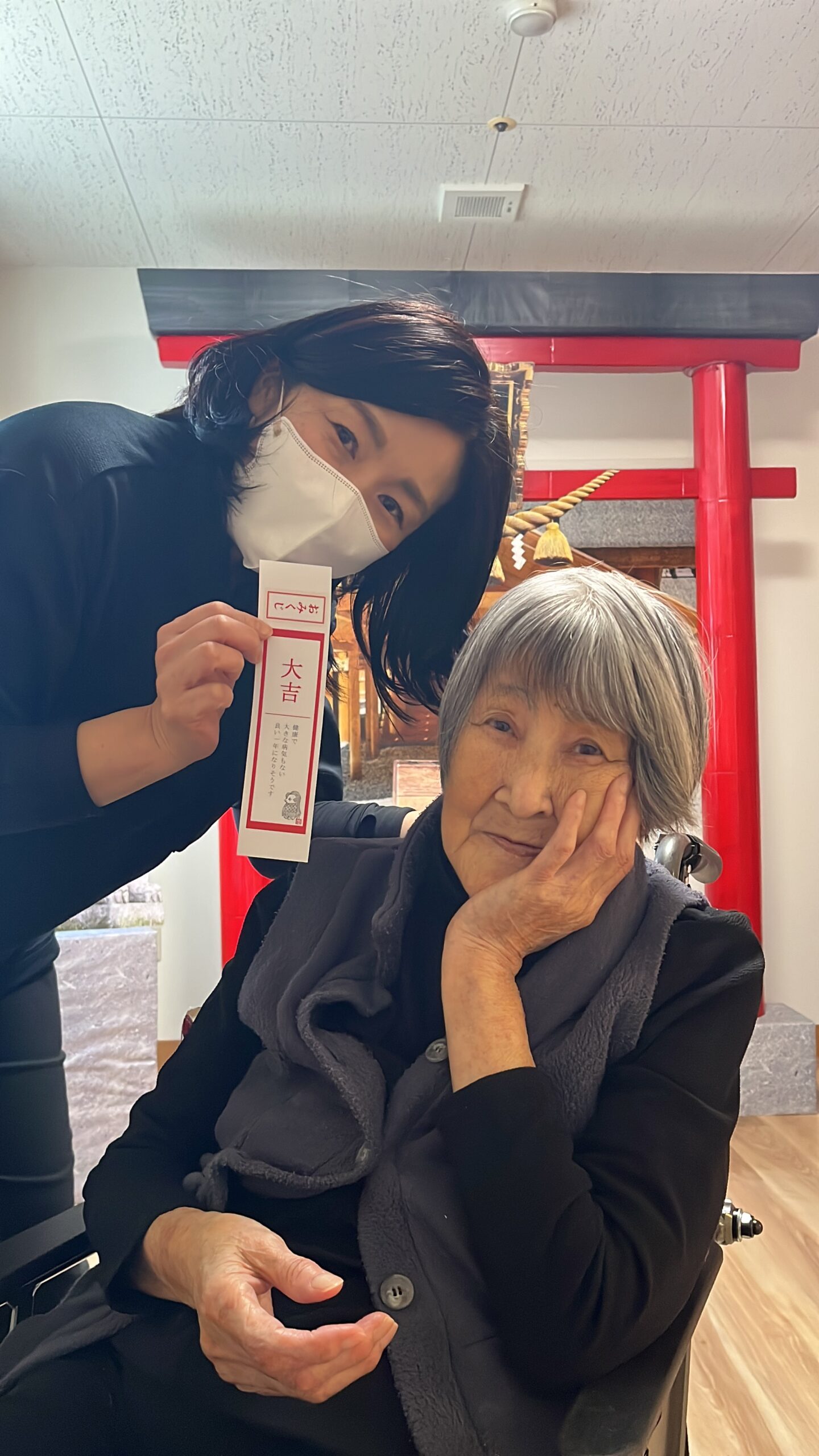 初詣の後は、甘酒を飲みながら、スタッフと新年をのんびりと過ごして頂きました。